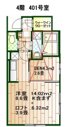 ![]() 401号室 3.9畳(6.32m2) の広さのロフト |